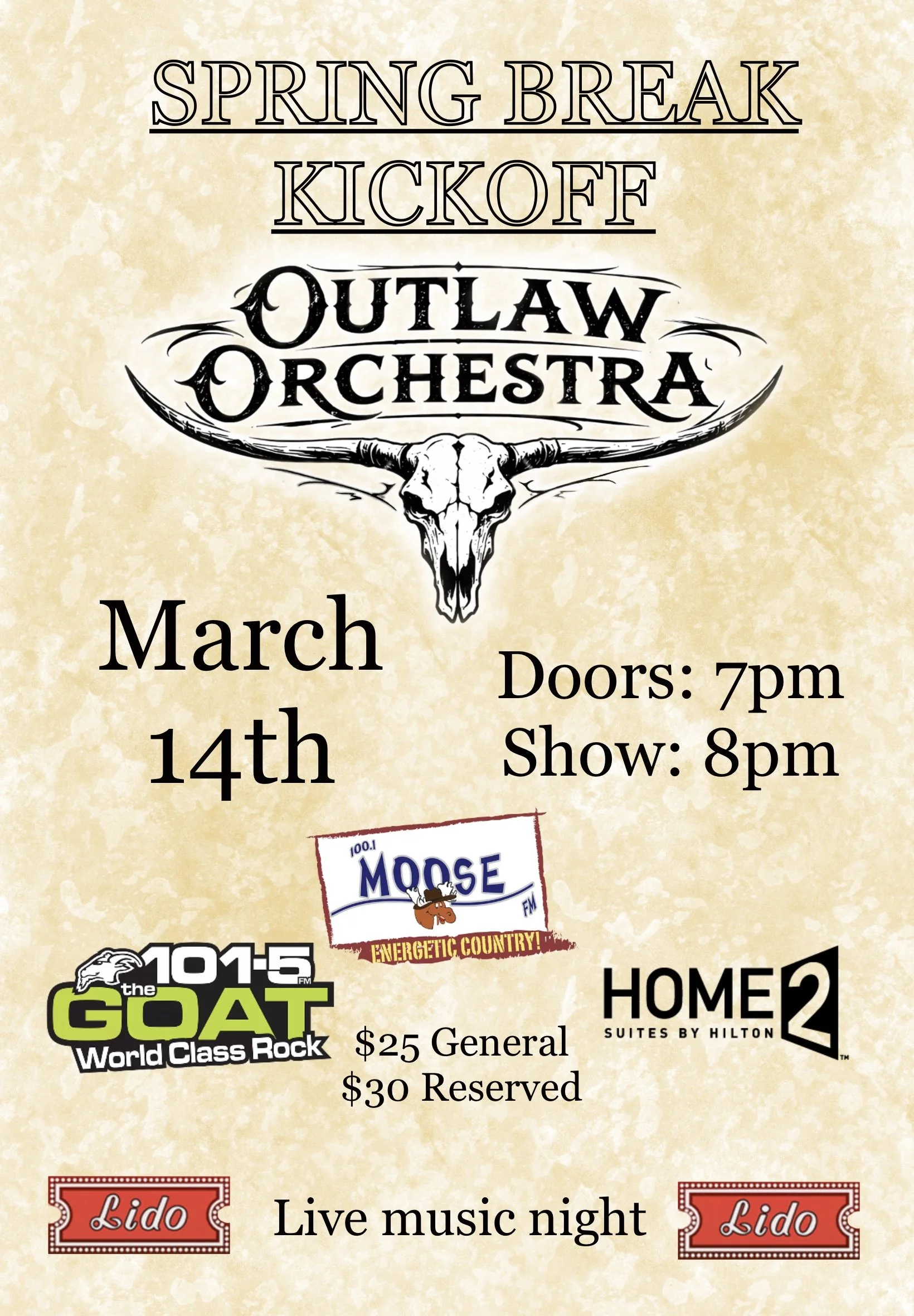 Spring Break Kickoff Saturday, March 14, 2026 7:00 p.m. 8:30 p.m. Lido Theatre 10156 100 Avenue Fort St. John, BC, V1J 1Y6 Canada (map) Google Calendar ICS Buy Tickets Here