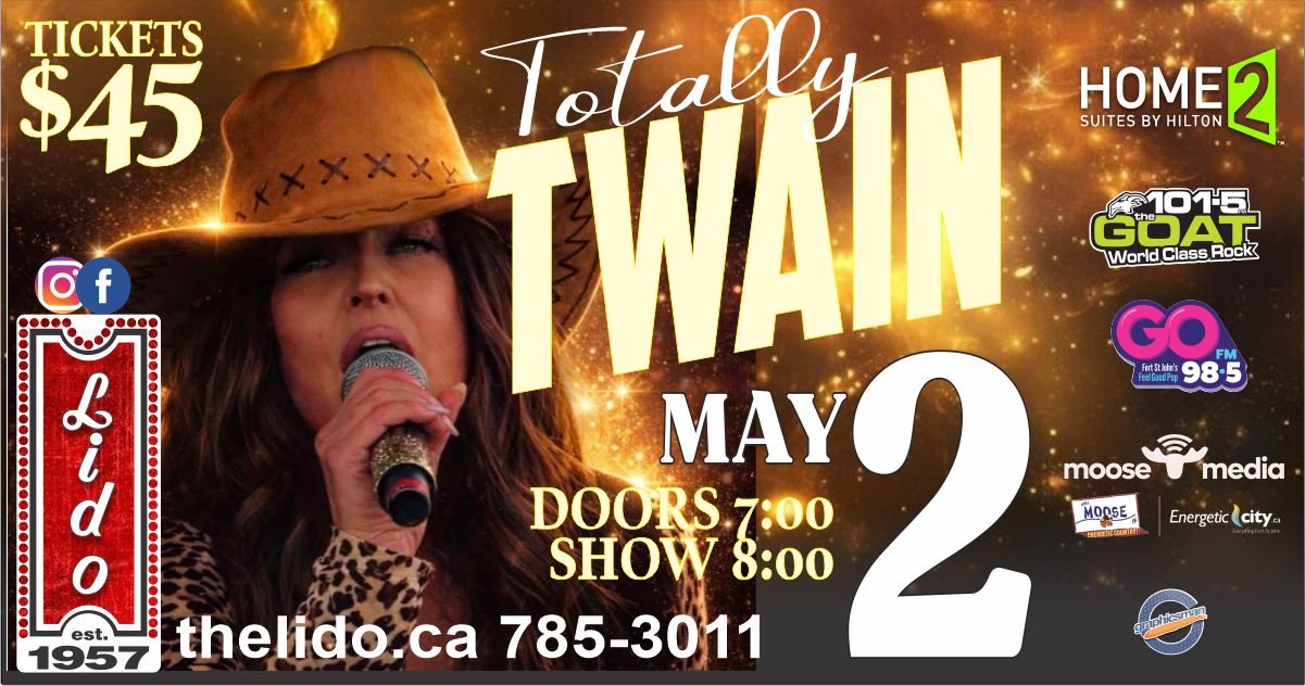 Back to All Events Totally Twain Saturday, May 2, 2026 8:00 p.m. 11:00 p.m. Lido Theatre 10156 100 Avenue Fort St. John, BC, V1J 1Y6 Canada (map) Google Calendar ICS Buy Tickets Here